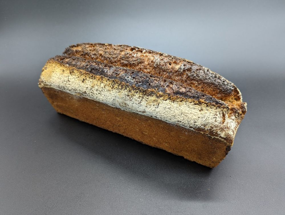 Pain Complet Moulé confectionné à base de farine Type 150. Levain naturel et sel de Guérande. Levure (0,01%) (Certifié Bio. FR-BIO-09) Indice glycémique:35