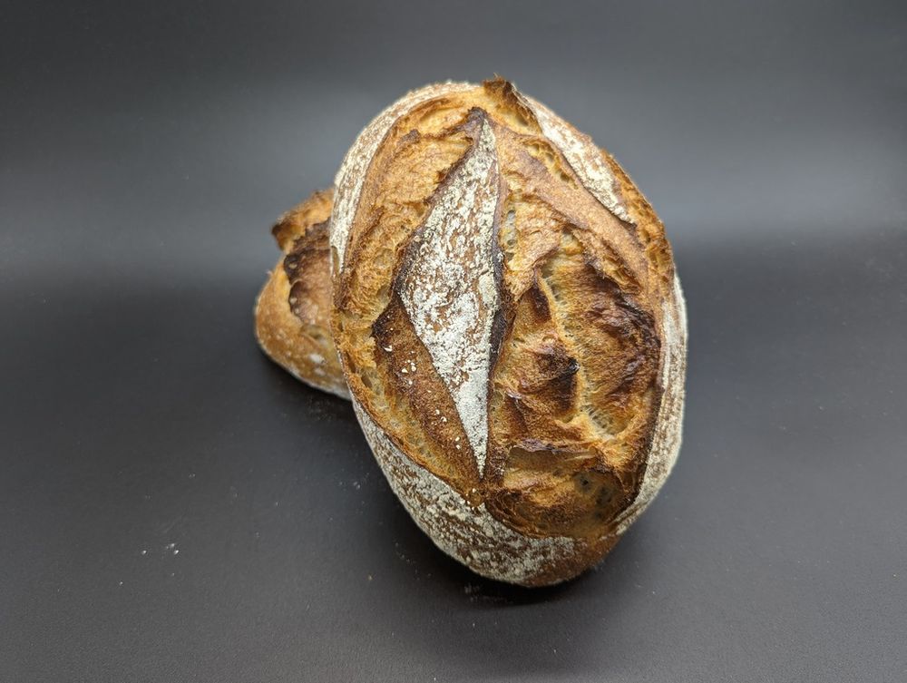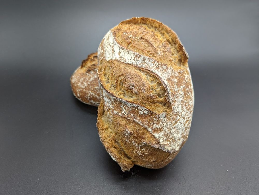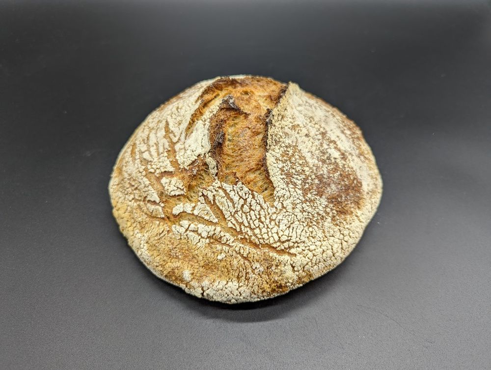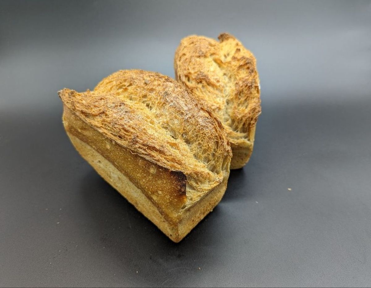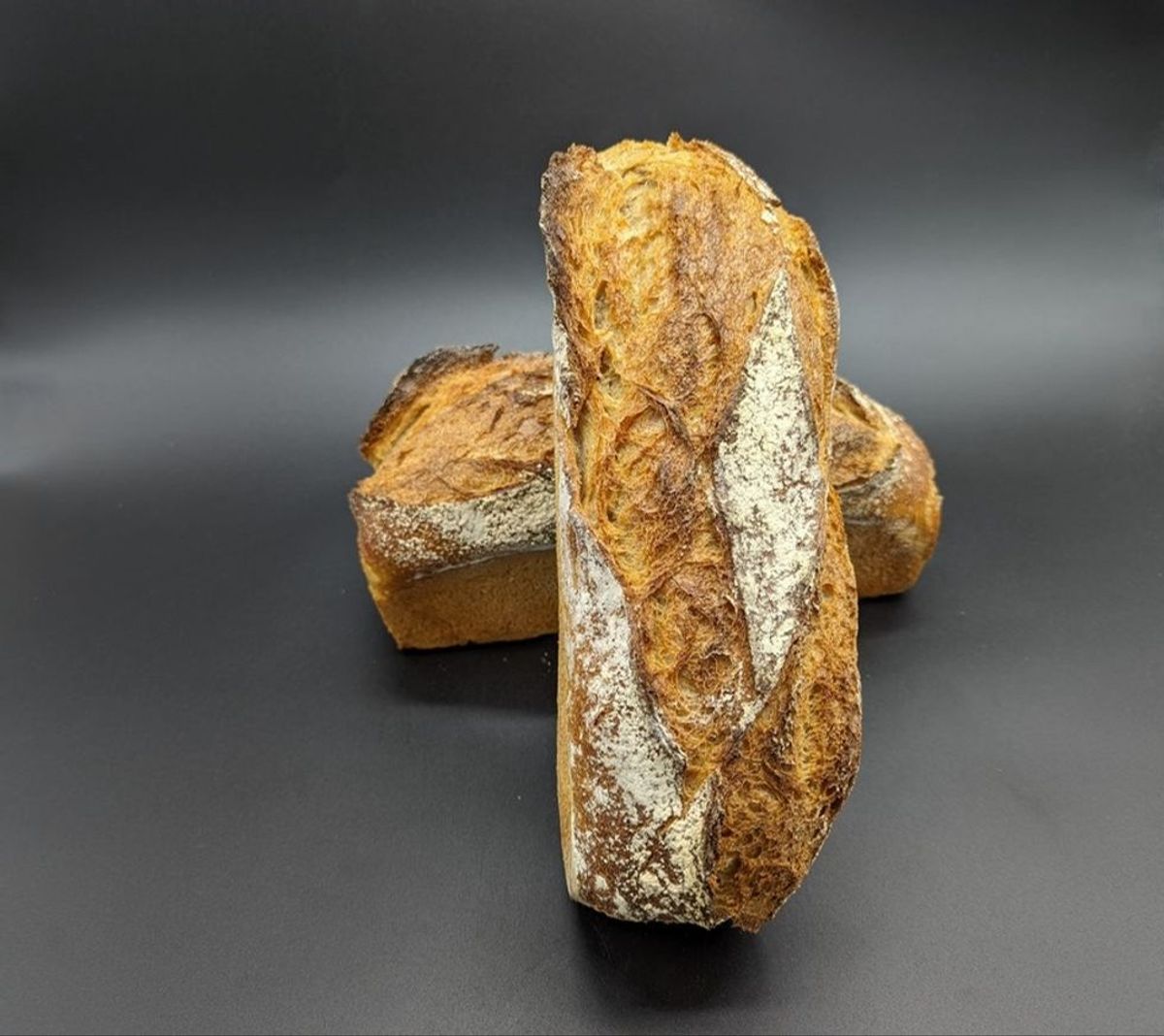 Pain Semi Complet confectionné à base de farine Type 80. Levain naturel et sel de Guérande. Levure (0,01%) (Certifié Bio. FR-BIO-09)
