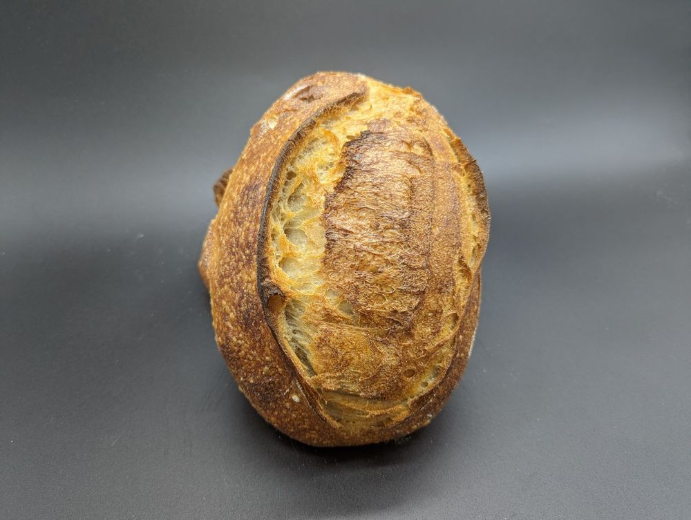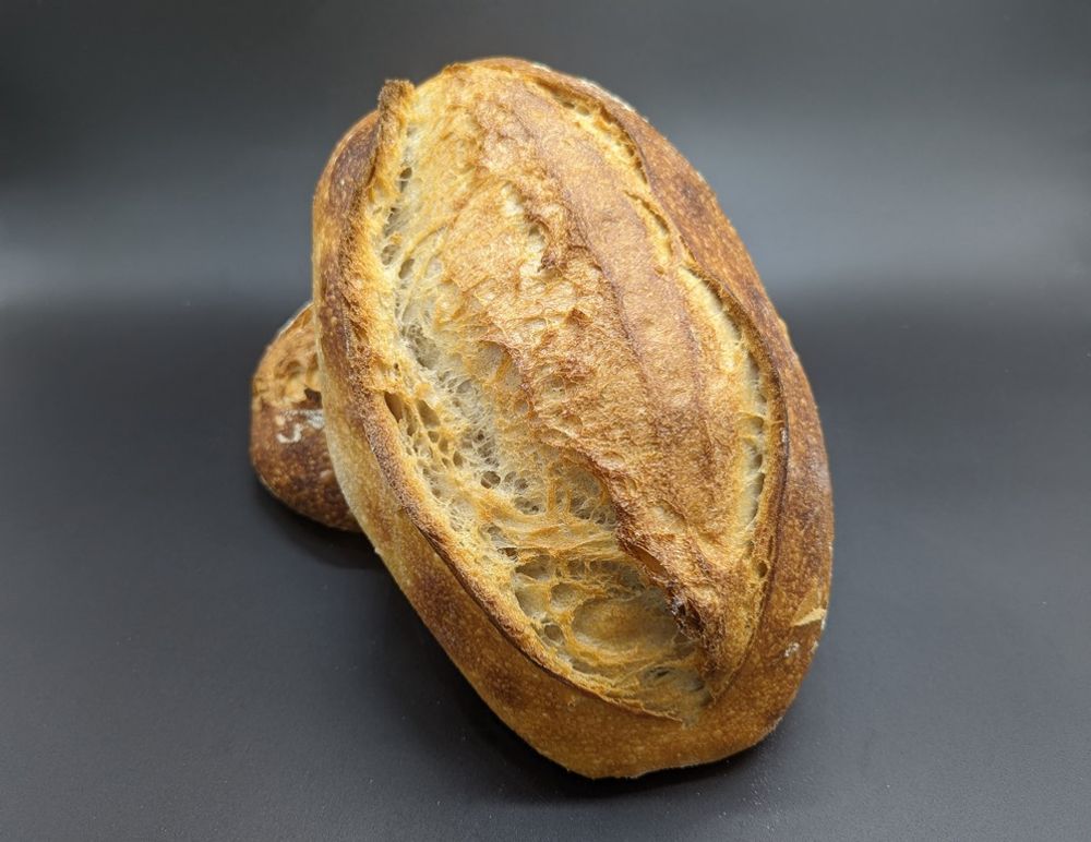 Pain Blanc confectionné à base de farine Type 65. Levain naturel et sel de Guérande. Levure (0,01%) (Certifié Bio. FR-BIO-09)