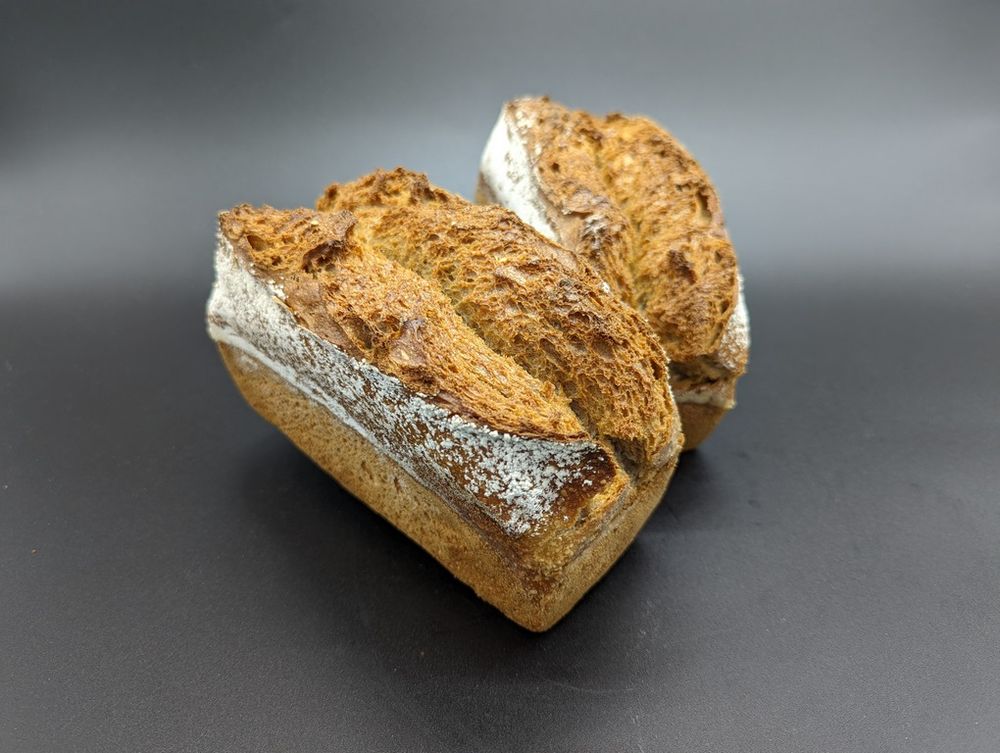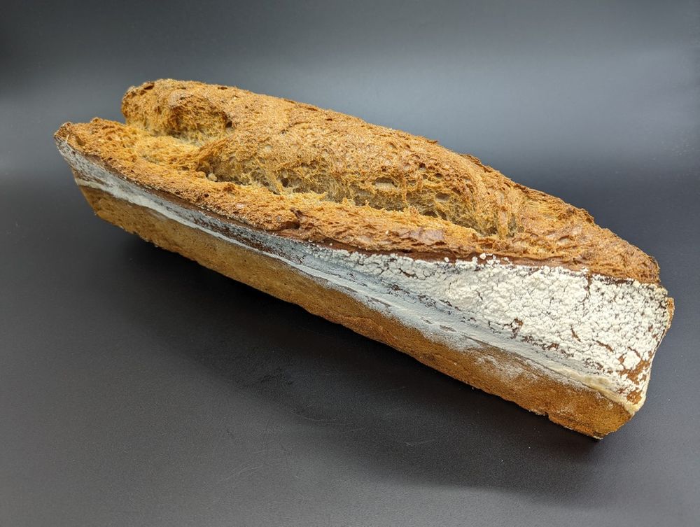 Le pain signature de notre boulangerie. Elaboré à base de froment Type 65 et de farine de maïs torréfié (5%) . Levain naturel et Sel de Guérande. Levure (0,01%). Pour les amateurs de bonne croûte et de mie aérée... (Vendu au poids) (Certifié Bio. FR-BIO-09) L'intégralité des ingrédients est issue de l'agriculture biologique à l'exception du sel et des algues étants produits de la mer)