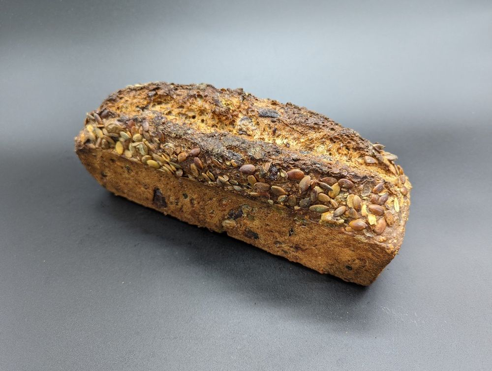Pain Norvégien agrémenté d'olives recouvert de graines de courge... (Certifié Bio. FR-BIO-09) L'intégralité des ingrédients est issue de l'agriculture biologique à l'exception du sel et des algues étants produits de la mer)