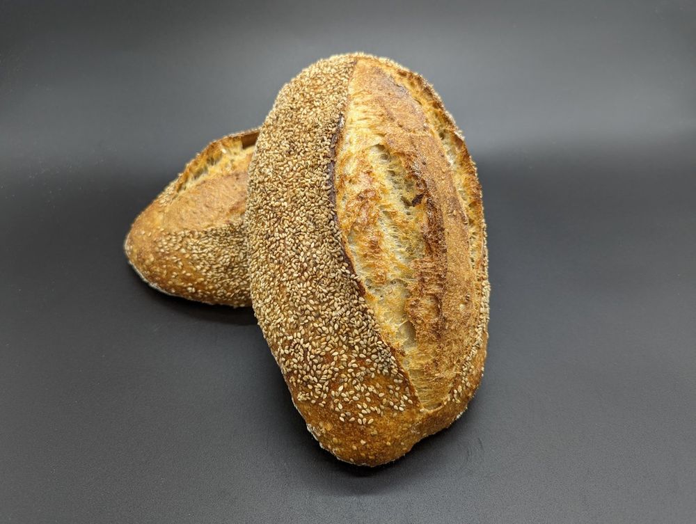 Pain blanc au graines de sésame. Farine T65 (Certifié Bio. FR-BIO-09) L'intégralité des ingrédients est issue de l'agriculture biologique à l'exception du sel et des algues étants produits de la mer)