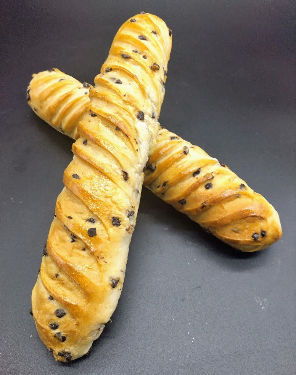 Sur une base de pâte à baguettes de tradition. Pain au cacao maigre et pépites de chocolat Farine Type 65 (Certifié Bio. FR-BIO-09) L'intégralité des ingrédients est issue de l'agriculture biologique à l'exception du sel et des algues étants produits de la mer)